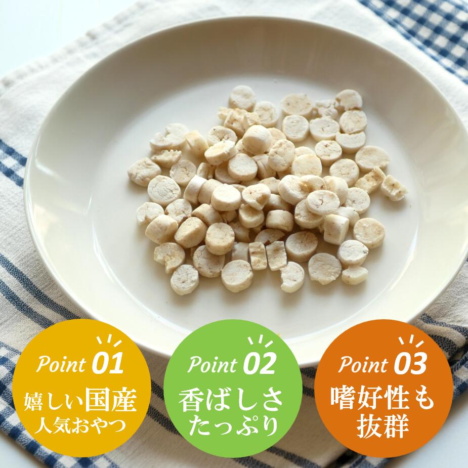 | 原材料 | 米粉、馬鈴薯澱粉、蜂蜜、鹿粉、チーズパウダー、オリーブオイル |